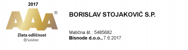 Smo prejemnik certifikata bonitetne odličnosti, ki predstavlja nadpovprečno bonitetno vrednost gospodarskih subjektov.